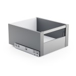 DiBOX is a modern drawer system that allows you to create perfectly fitted drawers for your kitchen. It consists of thin-walled components designed for installation on commonly used 16 mm wooden boards. The range includes sides with push-to-open or soft-close slides (featuring 3D adjustment and durability up to 80,000 cycles), as well as inner fronts - including versions adapted for glass installation.