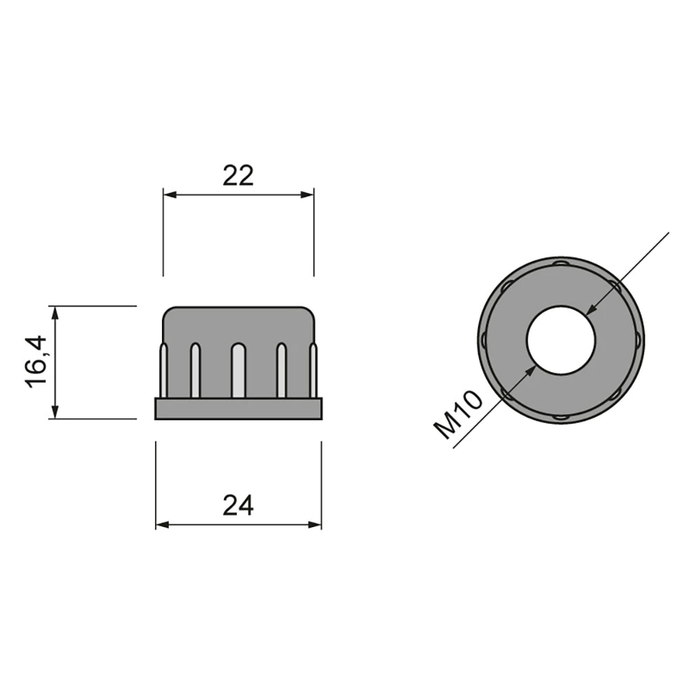 MN-255 foot nut (M10 thread) for aluminum tubes ⌀ 25 mm - durable and corrosion-resistant solution for applying furniture foot
