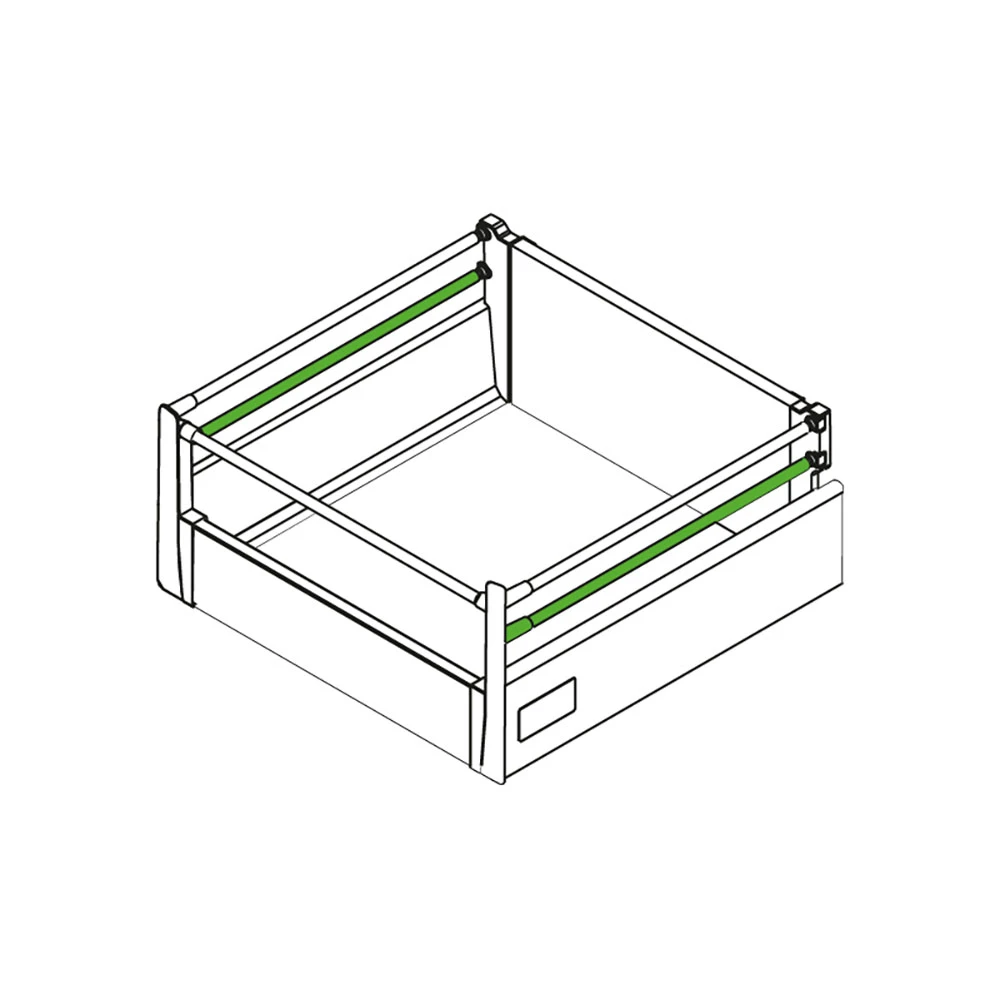 The rail stiffens the high front of the drawer, acting as a connector between the front and the rear mounting. This makes the drawer front more stable and durable for everyday use. Additionally, the rail evenly distributes forces acting on the drawer, increasing its stability.