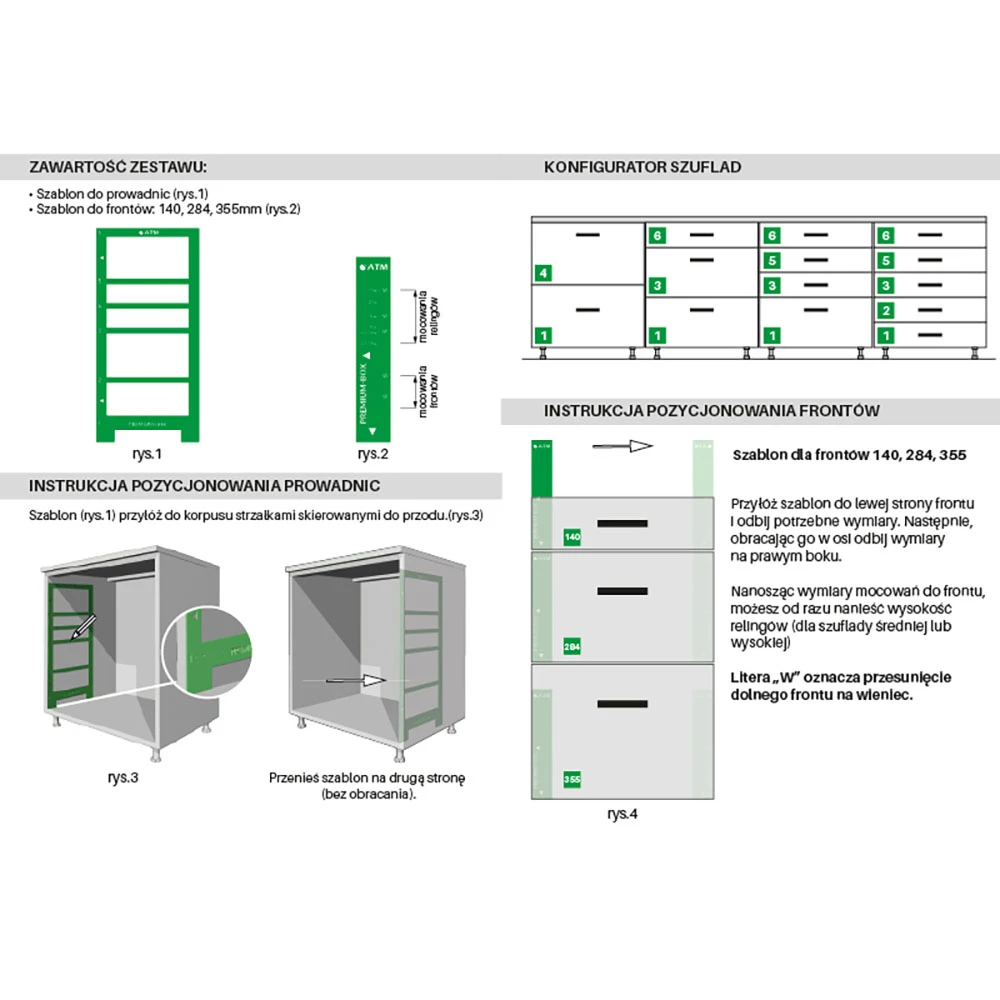 The PREMIUM-BOX drawer installation template is a professional tool that significantly speeds up and simplifies the assembly process. Thanks to precise CNC laser cutting, it ensures the highest accuracy, while properly positioned holes for installing slides and front brackets allow for installation configurations at various heights - tailored to individual needs. A stable construction and intuitive design ensure that assembling PREMIUM-BOX drawers is fast and efficient. The product was developed based on over 25 years of experience of the Polish brand ATM, known for its high-quality furniture accessories.