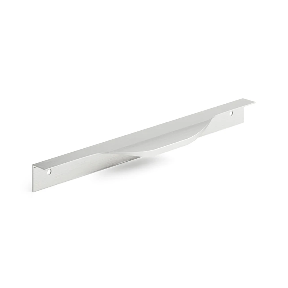 The UM-520A edge handle is a perfect, modern addition that fits seamlessly into any interior design. Made of durable aluminum, it offers resistance to scratches and signs of everyday use. The edge-mounted design integrates the handle smoothly with flat furniture fronts, emphasizing a minimalist style. The widened grip ensures comfortable handling, and the included screws allow for quick and easy installation.