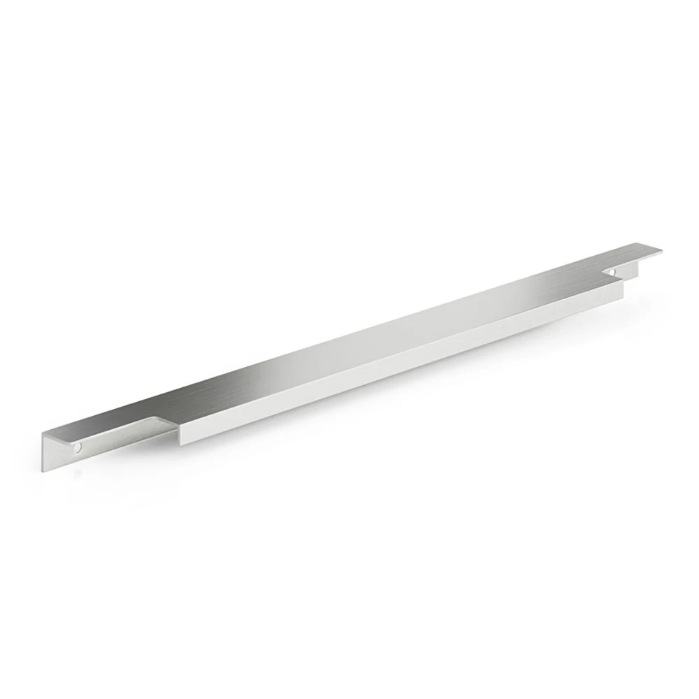 The UM-620 furniture handle is an edge-mounted handle (placed on the top edge of a cabinet or drawer), characterized by a modern design and clean lines. Its smooth surface, combined with an ergonomic and subtle grip, gives it a delicate and refined appearance. The availability of different handle lengths, tailored to standard furniture sizes, makes it suitable for kitchen cabinets, as well as bathroom and office drawers.