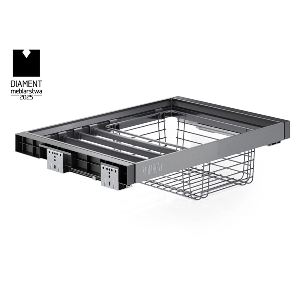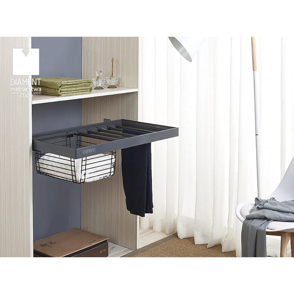 Pants Hanger + Clothing Basket for Wardrobe WB-663-700 SYMPHONY in Anthracite - Soft Close, Full Extension, 60,000 Cycles, Bottom Mount Guide, Up to 35 kg