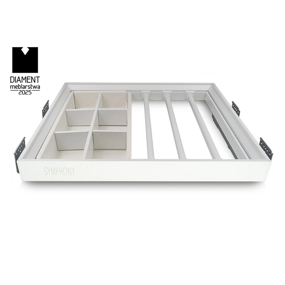 Pants Hanger + Jewelry Organizer WB-664-700 SYMPHONY in White - Soft Close, Full Extension, 60,000 Cycles, Bottom Mount Slide, Up to 35 kg