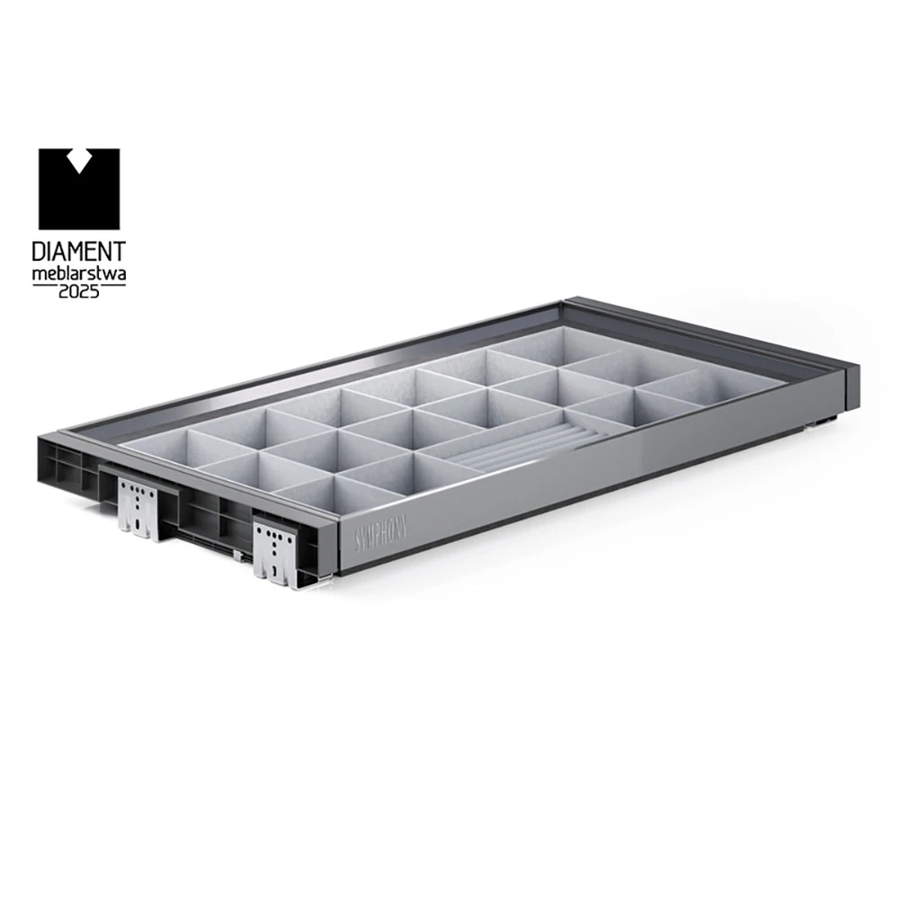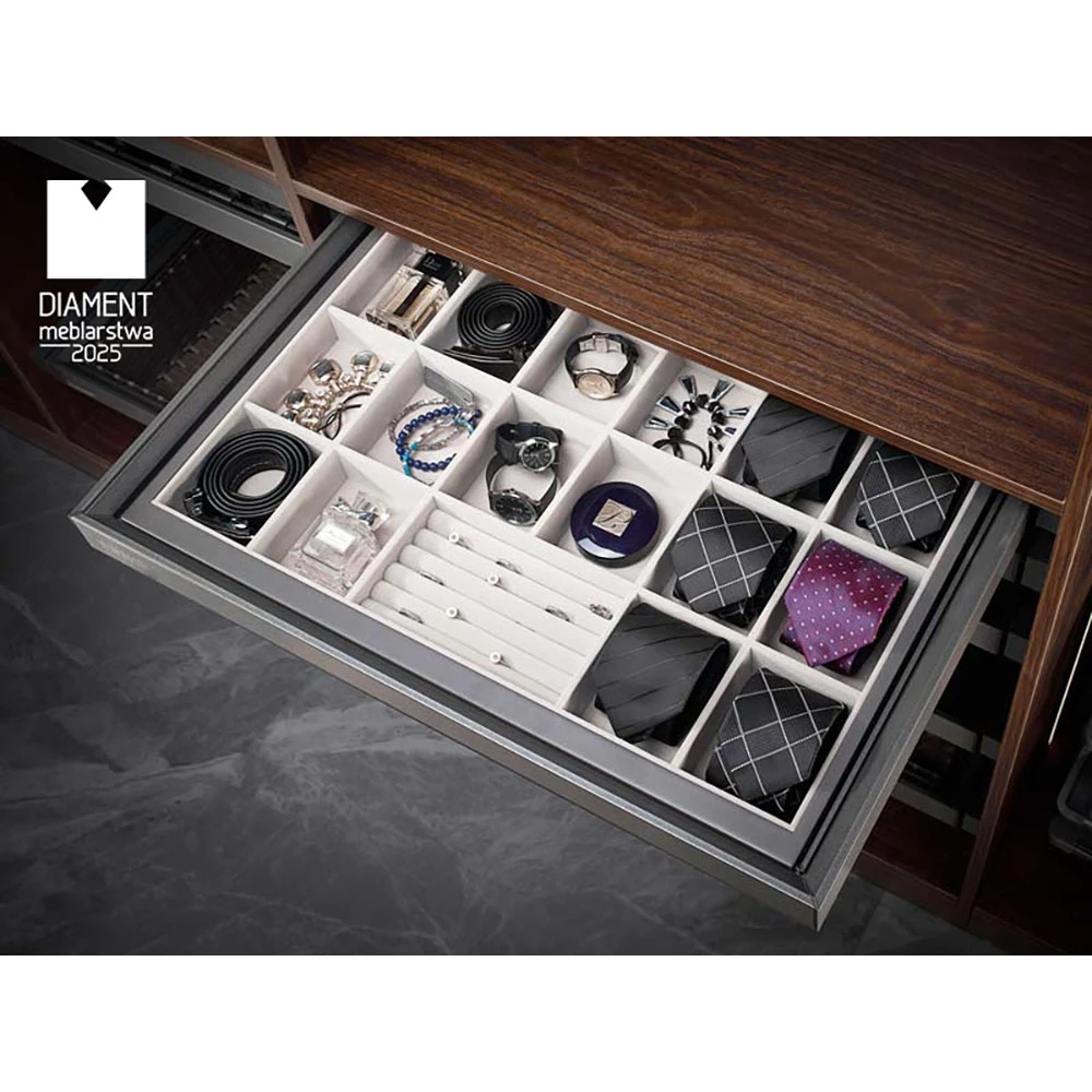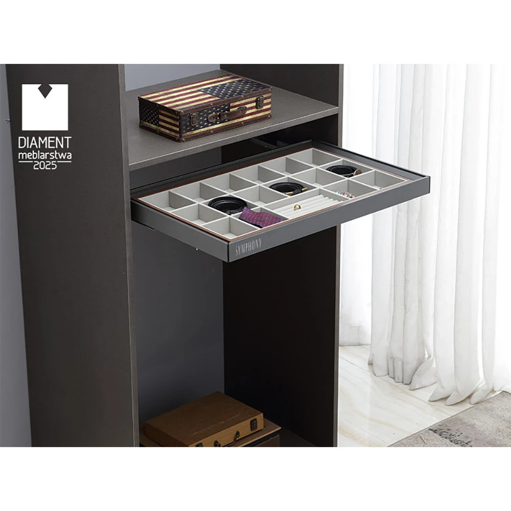 Jewelry organizer for wardrobe WB-665-900 SYMPHONY Anthracite - Soft close, full extension, 60,000 cycles, bottom mount slide, up to 35 kg