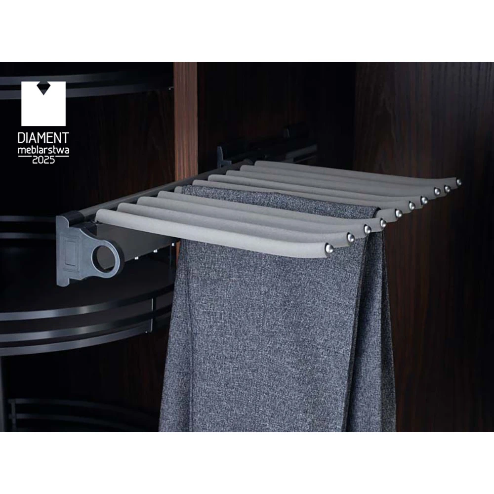 SYMPHONY WB-667 is an excellent solution for storing pants in a wardrobe. Equipped with 10 separate arms, it ensures convenient and aesthetically pleasing clothing storage while protecting it from creases. Each arm features an anti-slip material and upward-curved ends, preventing pants from slipping off.