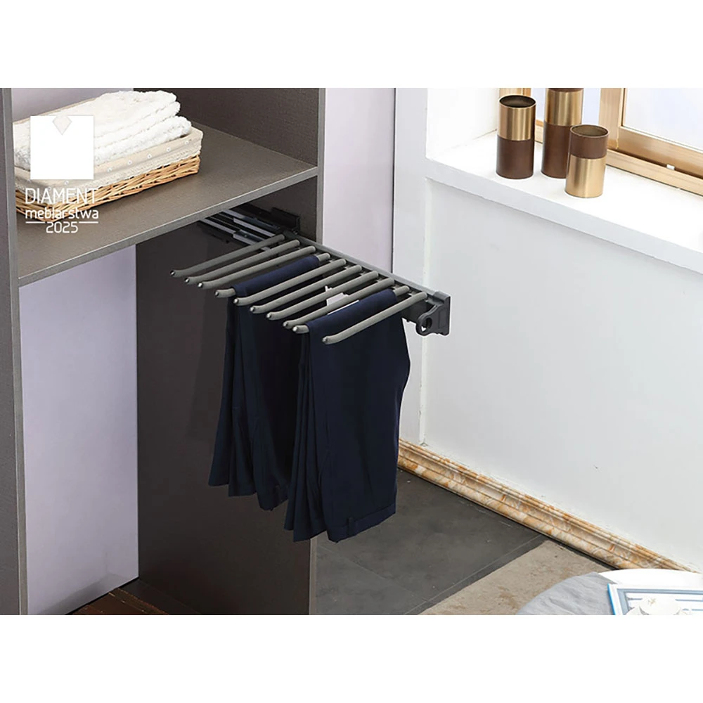 Pants Side Hanger for Wardrobe WB-667 SYMPHONY White – Up to 10 Pairs of Pants, Soft Close, Full Extension, 60 000 Cycles, Anti-Slip Material
