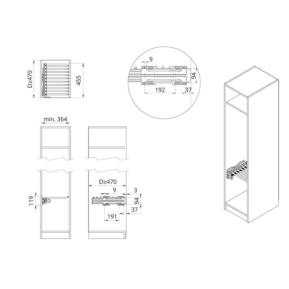 WB-667 is equipped with a full extension system, allowing easy access to each pair of pants. The TANDEM guides ensure smooth and stable operation of the hanger, enhancing user comfort.