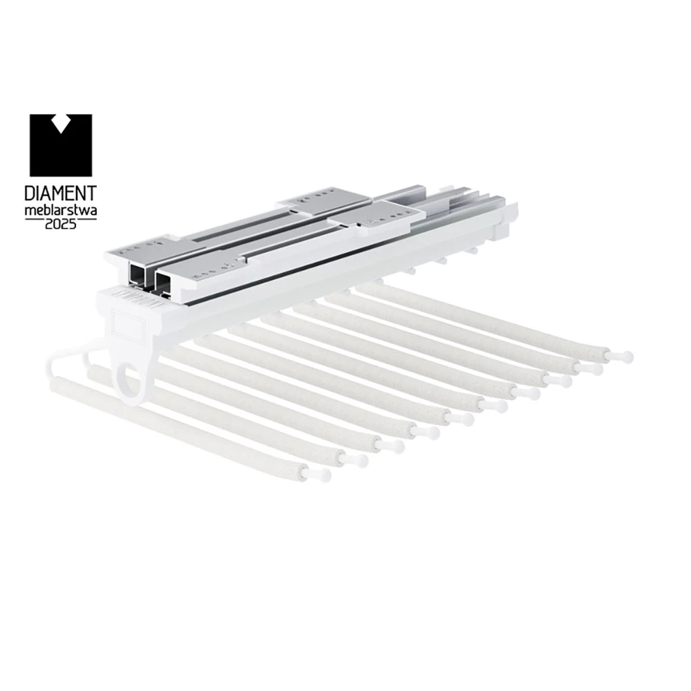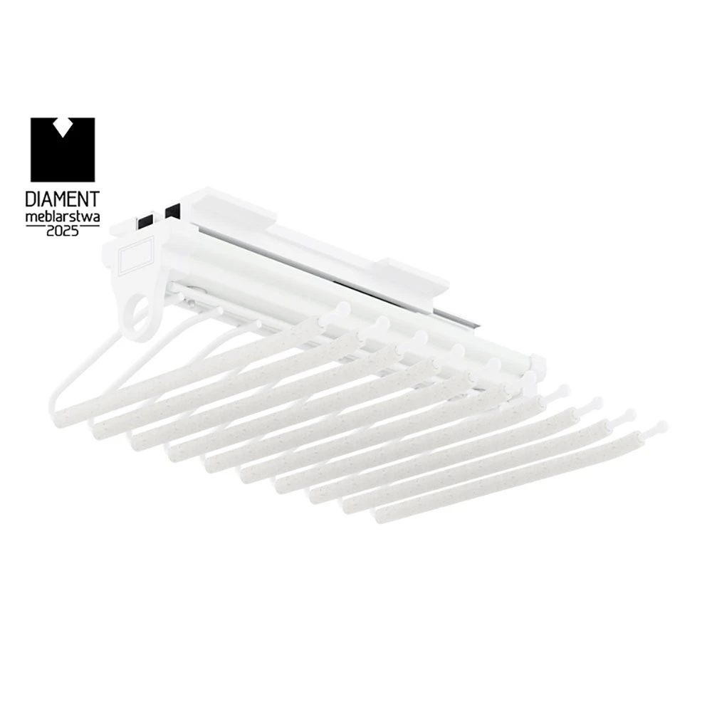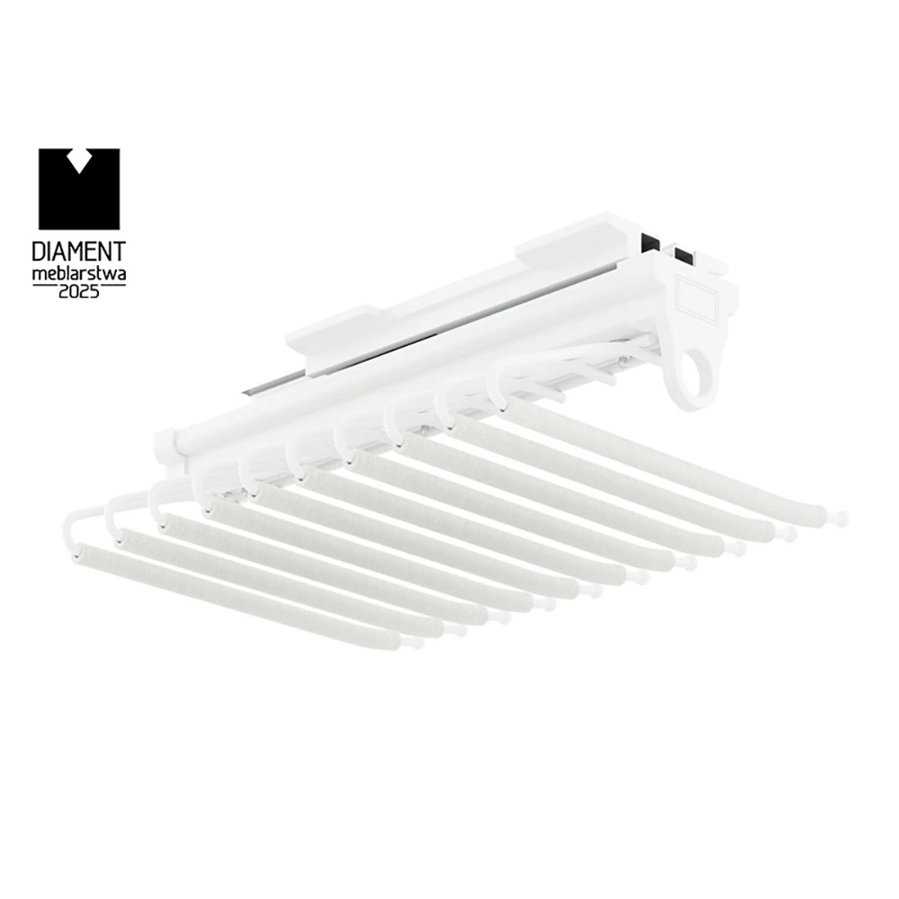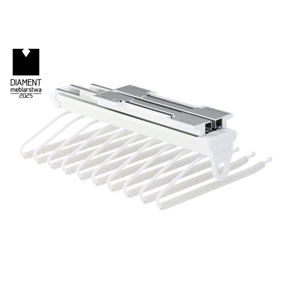 The WB-670 hanger, part of the SYMPHONY series, like other products in this line, is equipped with a full extension system. This allows you to completely extend the unit from the wardrobe, making it easier to access all stored items, even those at the very end of the hanger.