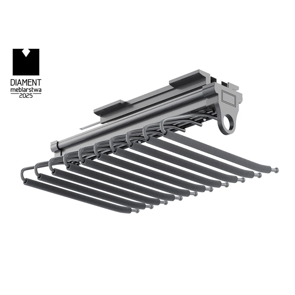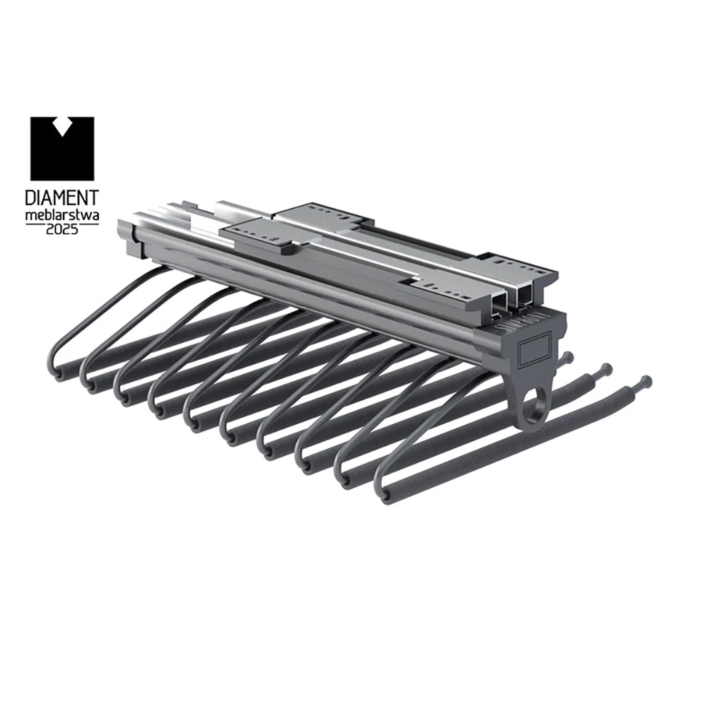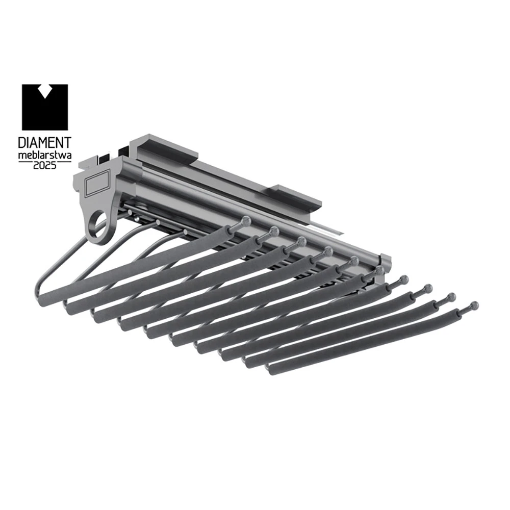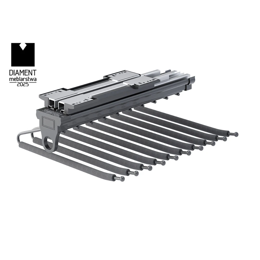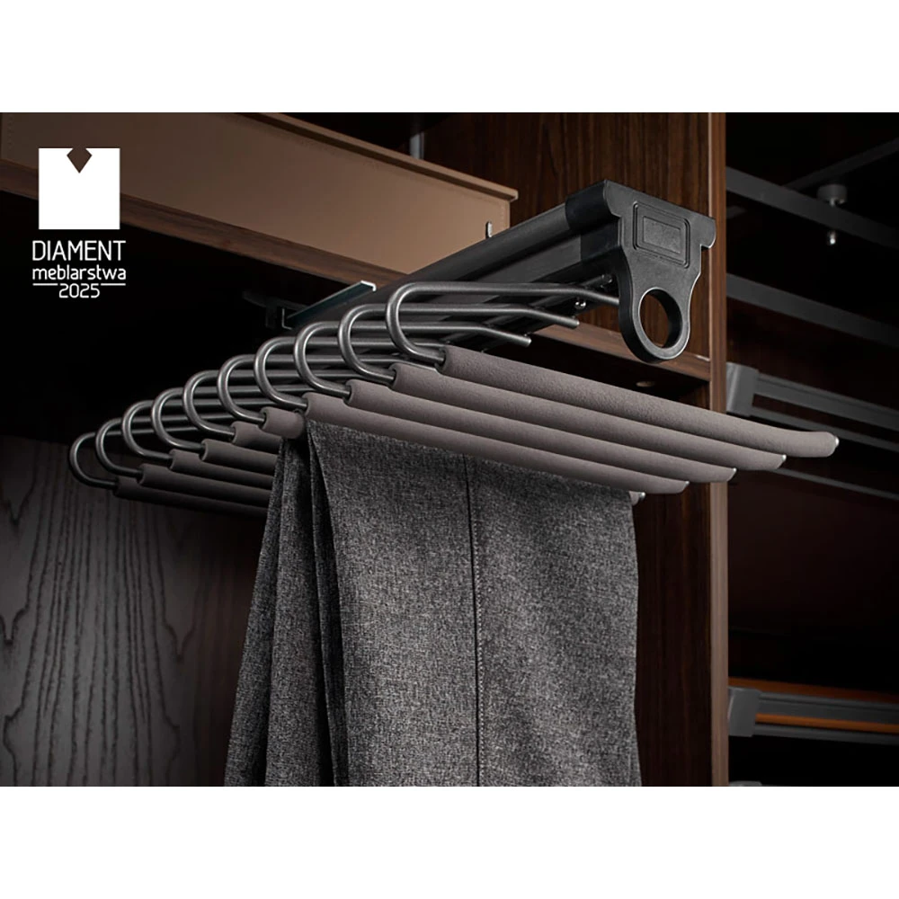 The WB-670 hanger, part of the SYMPHONY series, like other products in this line, is equipped with a full extension system. This allows you to completely extend the unit from the wardrobe, making it easier to access all stored items, even those at the very end of the hanger.