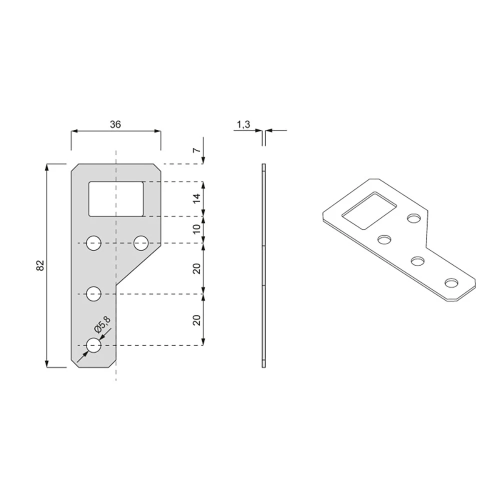 ZM-280 cabinet hanger L/R (82x37x1.5 mm) made of galvanized steel