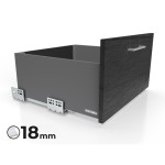 Szuflada EVO jest przystosowana do pracy ze standardową płytą meblową o grubości 18 mm, co ułatwia montaż i pozwala na szybkie dopasowanie do większości mebli. Dzięki temu nie ma potrzeby stosowania niestandardowych rozwiązań, a instalacja przebiega sprawnie i bezproblemowo.