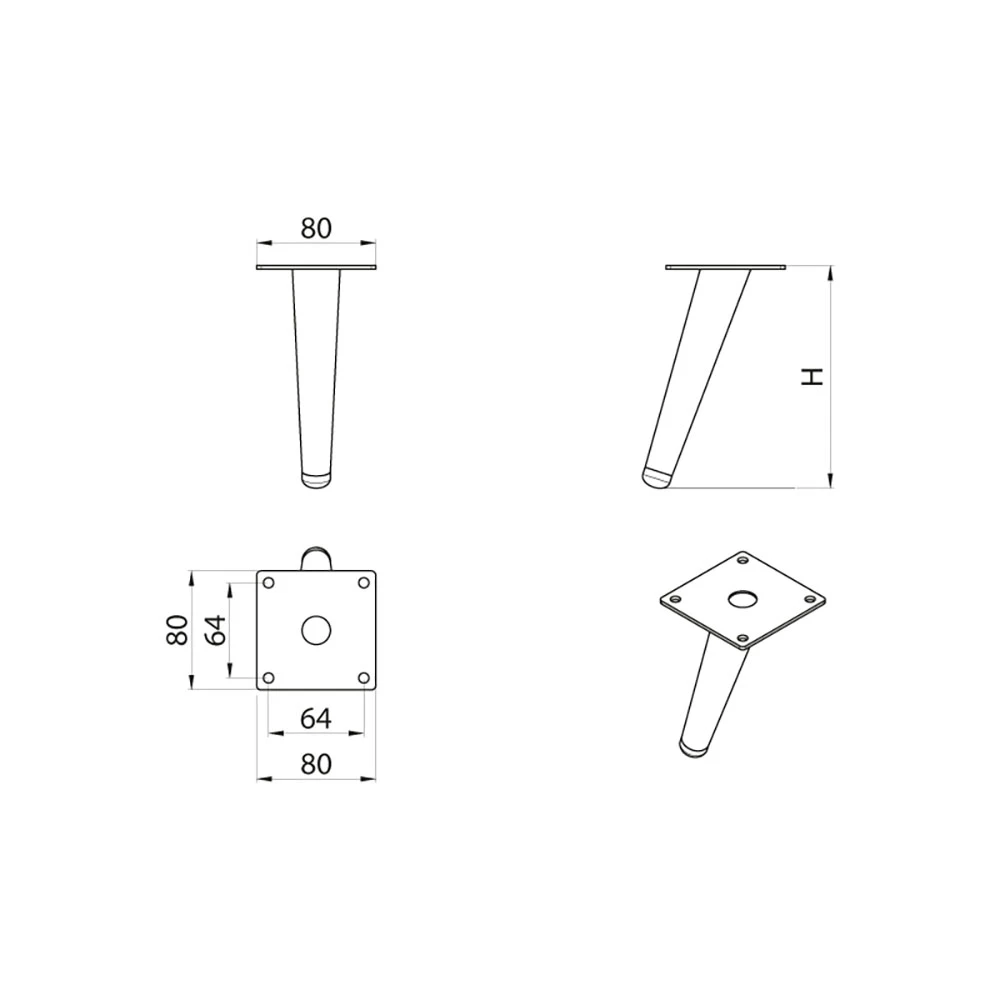 Stożkowy kształt nóżki DN-707 nada Twoim meblom lekki i elegancki wygląd. Delikatne zwężenie ku dołowi podkreśli nowoczesny charakter, który doskonale sprawdzi się w wielu aranżacjach wnętrz. Jest to idealny dodatek do mebli tapicerowanych, takich jak sofy, pufy czy fotele.