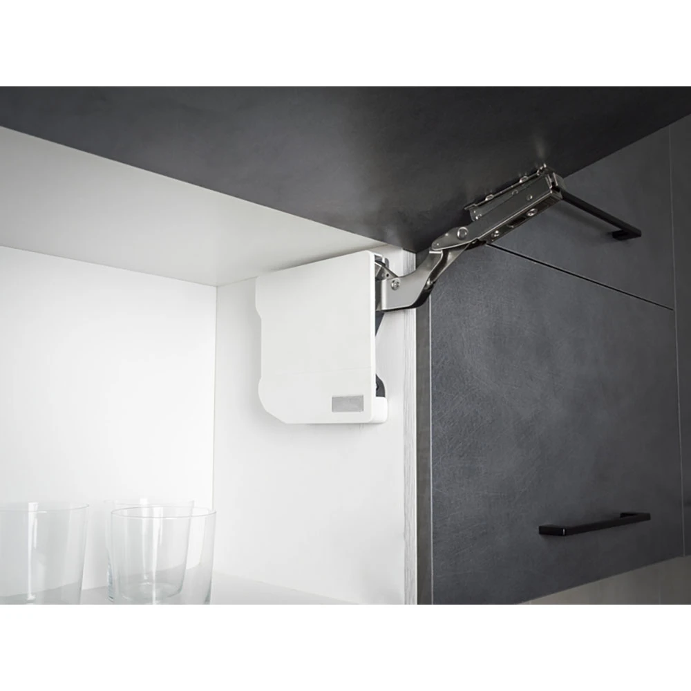 Podnośnik SkyUp umożliwia łatwe i płynne podnoszenie oraz opuszczanie frontów, obsługując obciążenie od 2,5 do 3,5 kg na jeden podnośnik. Mechanizm doskonale sprawdzi się w kuchni, łazience oraz innych pomieszczeniach, gdzie stosowane są szafki z podnoszonymi frontami.