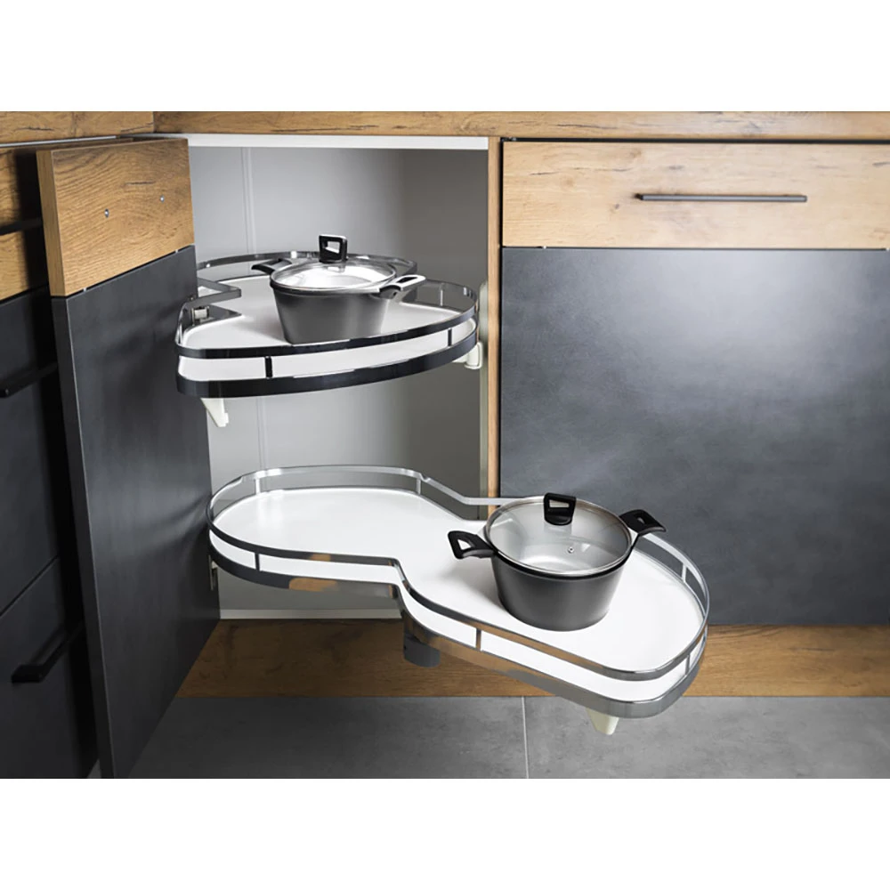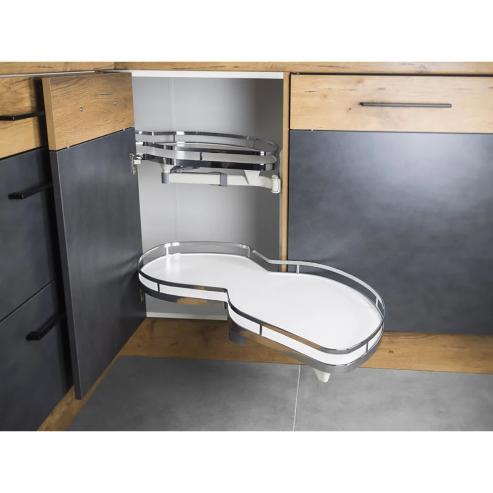 Nowoczesna półka narożna SUPLIMO WB-425 typu nerka to idealne rozwiązanie do zagospodarowania przestrzeni w szafkach narożnych. Wyposażona w dwie półki, SUPLIMO gwarantuje dużą przestrzeń na wszelkie przybory kuchenne.