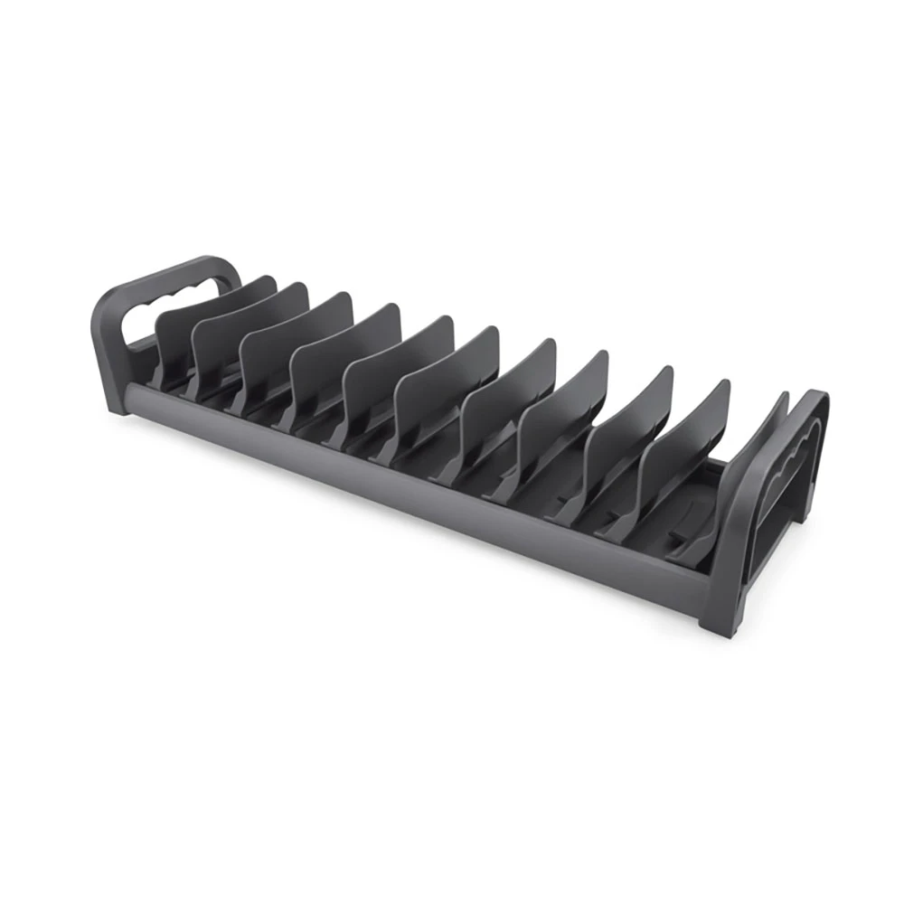 Organizer na talerze został stworzony z myślą o optymalnym przechowywaniu naczyń w kuchni lub jadalni. Umożliwia on pionowe ustawienie talerze, co zapobiega ich przesuwaniu i przypadkowym uszkodzeniom. Idealnie nadaje się do utrzymania porządku w szufladach z naczyniami, zapewniając szybki i wygodny dostęp do potrzebnych elementów zastawy.