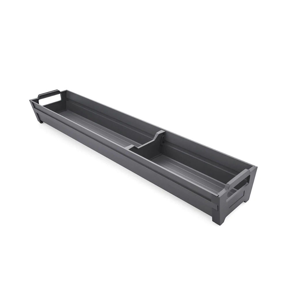 Wysokiej jakości aluminium, z którego wykonano podstawę i boki, gwarantuje trwałość i elegancję. Uzupełniają je uchwyty z tworzywa sztucznego, które zapewniają komfort użytkowania. Precyzyjne wymiary tego modelu pozwalają na idealne dopasowanie do większości szuflad, gwarantując maksymalne wykorzystanie dostępnej przestrzeni.